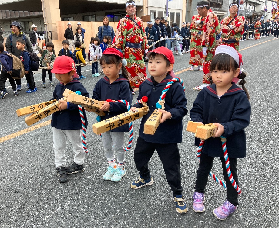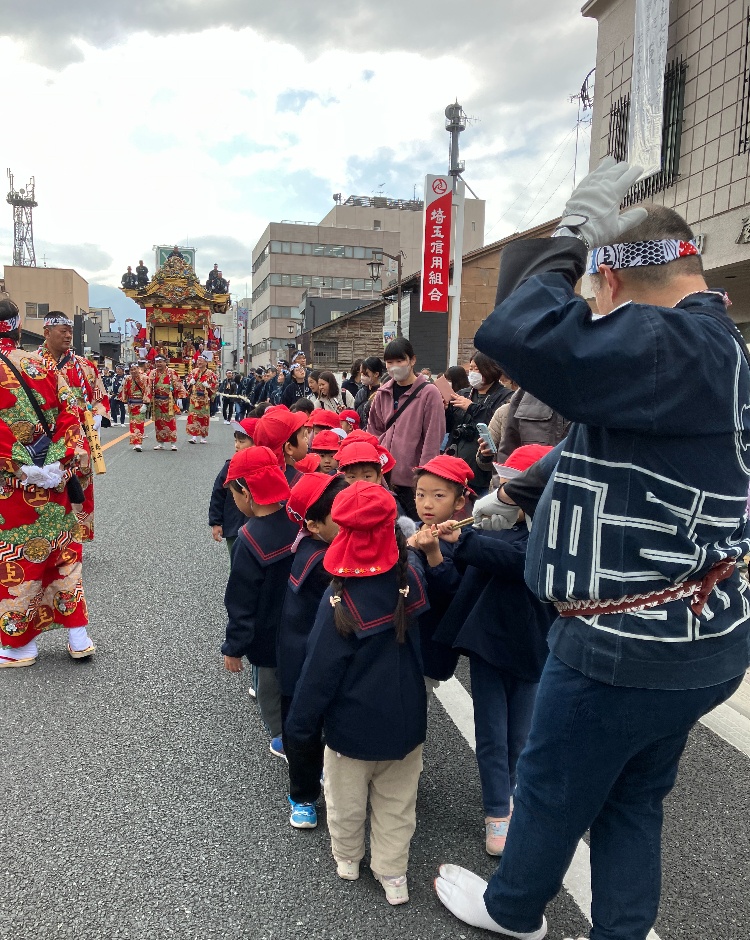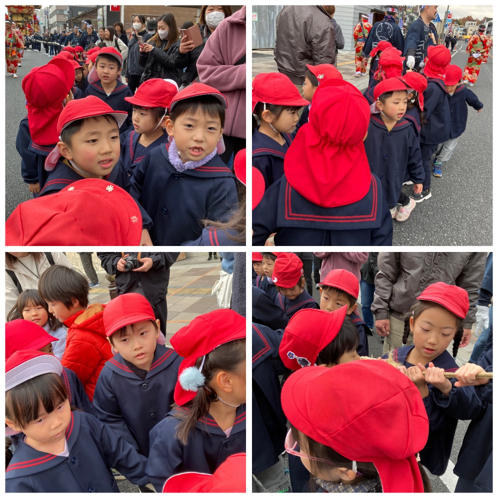 子ども達みんなが楽しみにしている≪秩父夜祭≫年長さんが≪上町屋台≫をひいてきました。「わっしょい!わっしょい!」と元気いっぱいの声が響きます‼