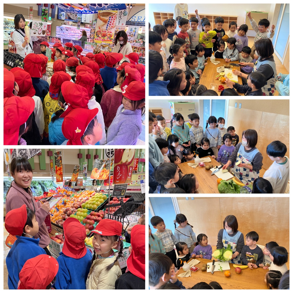 園に戻り、お買い物をした物をみんなで確認したり、切って中の様子を見てみたり、ちょっと味見もしちゃいました。