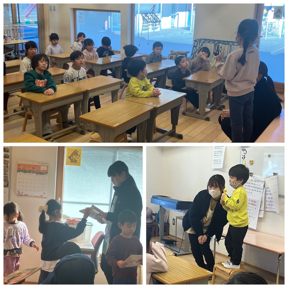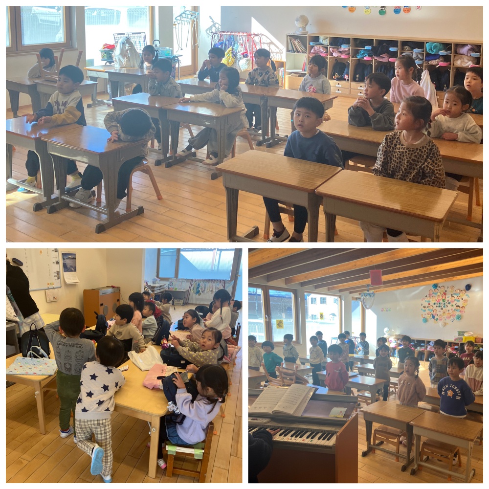 本年もよろしくお願いいたします。3学期もスタートしましたね。子ども達、元気に登園してくれました。楽しい事がたくさんあったのか、「先生〜」とたくさんお話ししてくれました。ホールでの終業式の後、お手紙をもらったり、冬休みの出来事をお友達にお話ししたり、各クラスでやり取りを楽しみました。3学期も笑顔たっぷり✨元気に過ごしていきましょう!